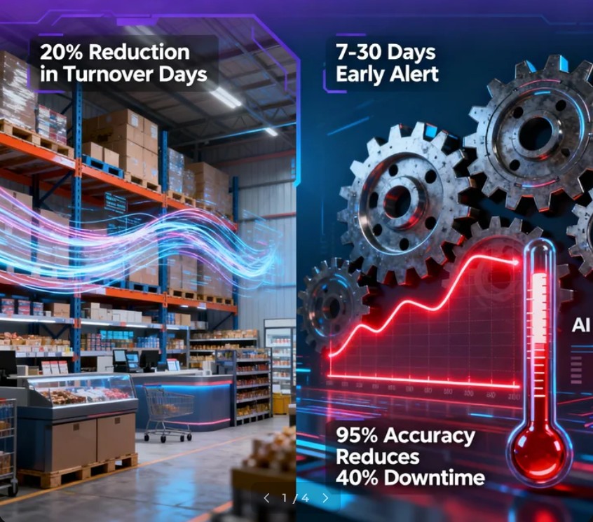 - Equipment-failure early warning: 95% accuracy, alerts 7–30 days ahead